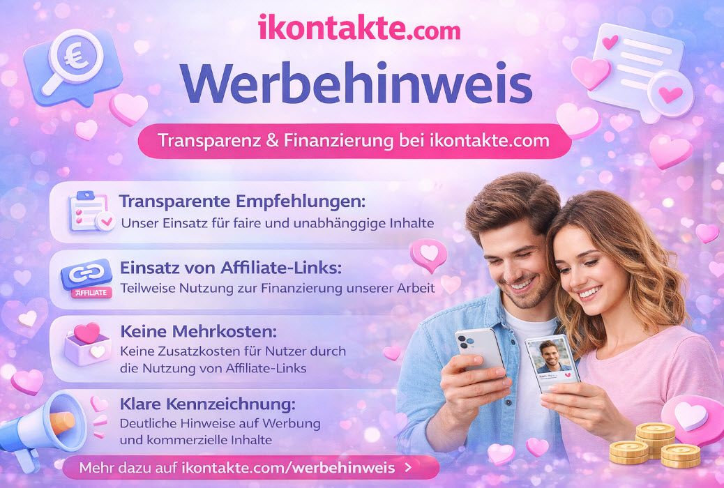 Affiliate-Links helfen uns dabei, den Betrieb und die redaktionelle Weiterentwicklung von ikontakte.com zu finanzieren. Dazu gehören unter anderem Recherche, Analyse, redaktionelle Pflege, technische Betreuung und die laufende Aktualisierung unserer Inhalte.